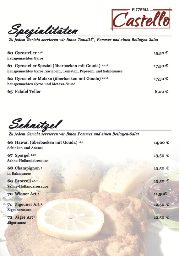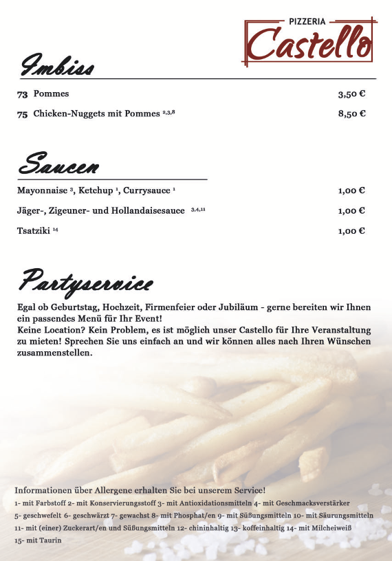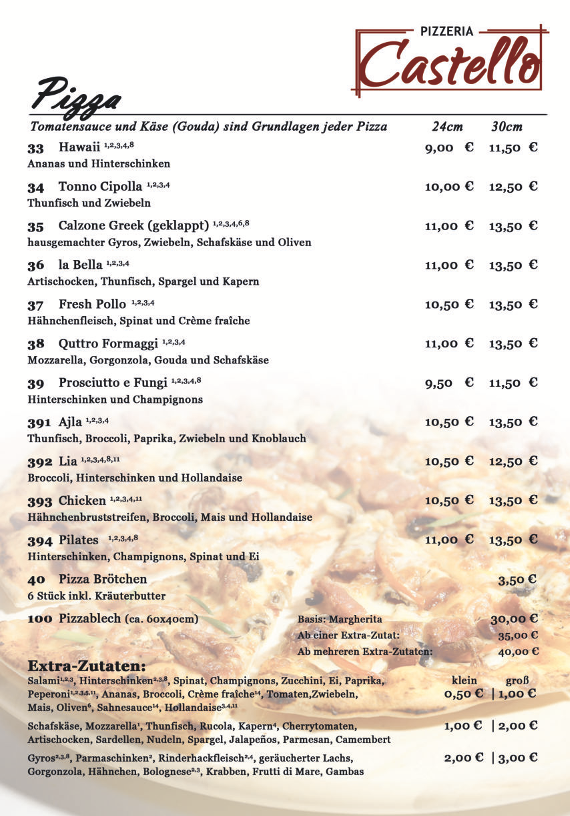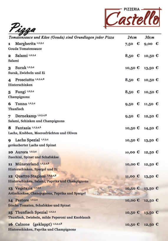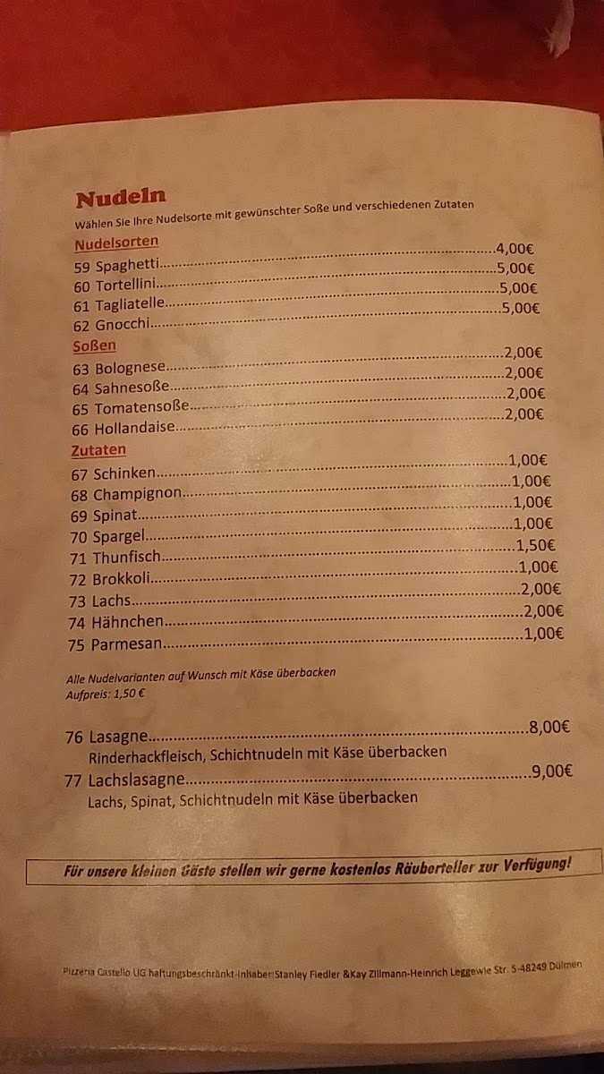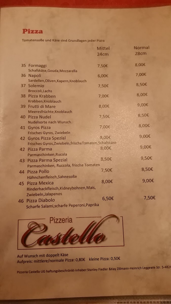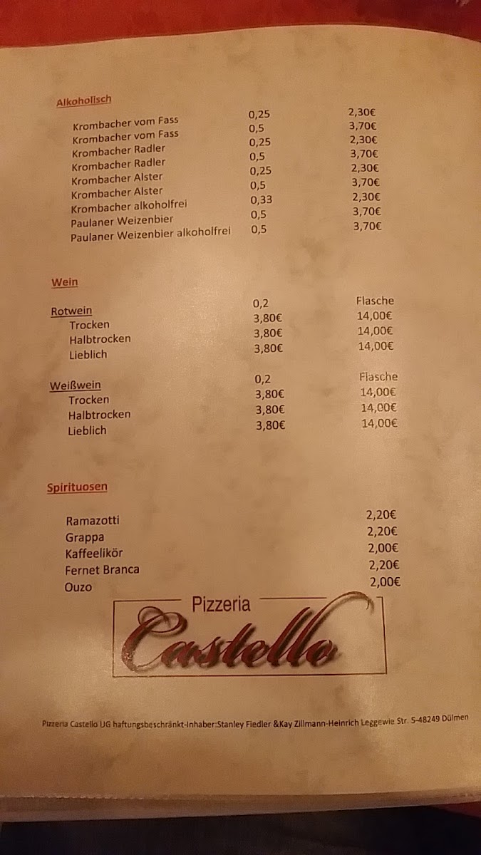 Welcome to Pizzeria Restaurant Castello, nestled in the heart of Dülmen at Heinrich-Leggewie-Straße 5. This charming pizza takeaway promises a delightful culinary experience that keeps patrons coming back. The standout recommendation is the Pizza Castello, hailed as "unschlagbar" by loyal guests like Bernd.
